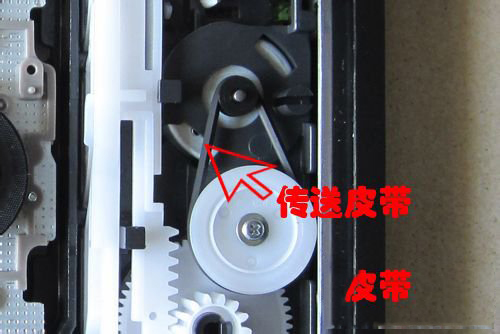5、在內部結構中,我們會看到,托盤的彈出需要用齒輪和皮帶的帶動。大部分光驅不出倉是因為這兩處出現問題。