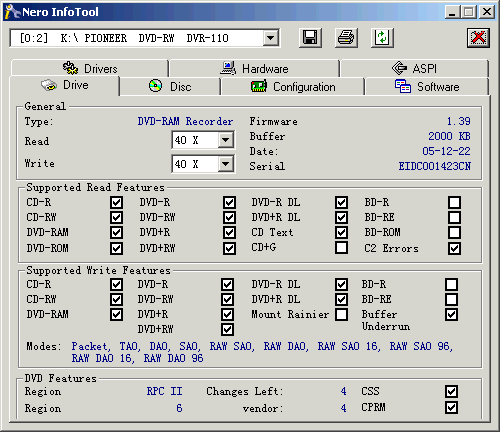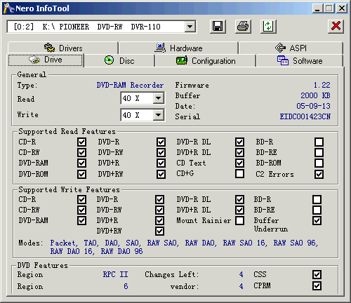 我們看到,用Nero InfoTool檢查原來機器產品是1.22版本,所以新下的肯定是“新”版本。