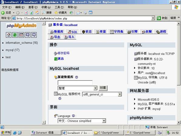 以上所述是小編給大家介紹的Windows Server 2003下配置IIS6.0+php5+MySql5+PHPMyAdmin環(huán)境的圖文教程,希望對大家有所幫助,如果大家有任何疑問請給我留言,小編會及時回復(fù)大家的。在此也非常感謝大家對武林網(wǎng)網(wǎng)站的支持!