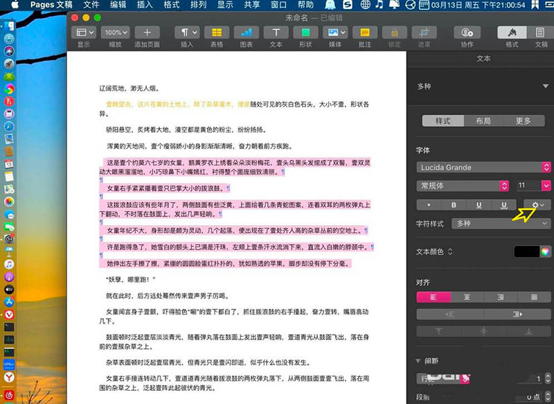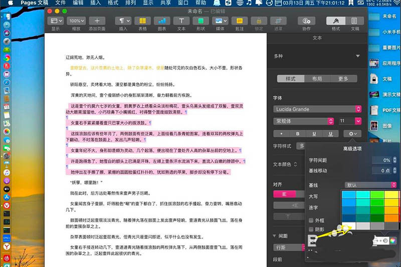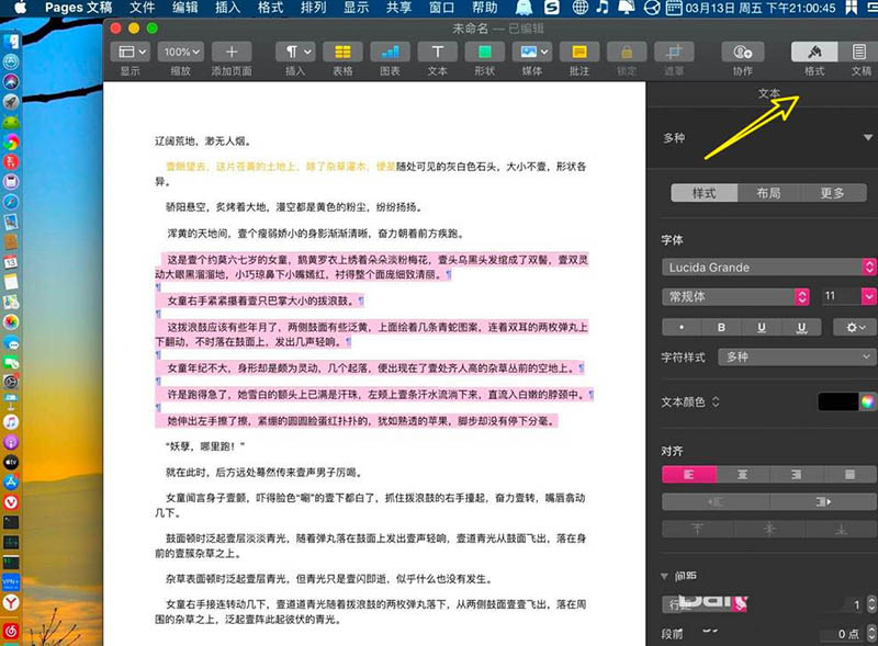 1、打開pages了,用鼠標選擇有底色的文字,如圖。