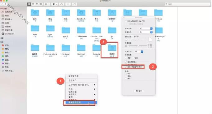 有些小伙伴表示用戶名文件夾里面沒有資源庫,其實是資源庫被隱藏了,請在訪達(dá)中右擊【查看顯示選項】,然后勾選【顯示“資源庫”文件夾】即可顯示文件夾,如圖: