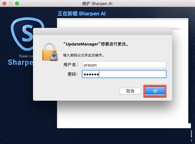 輸入Mac密碼后點(diǎn)擊【好】如圖: