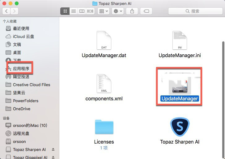 如果你想要卸載Topaz Sharpen AI mac版,那就在應(yīng)用程序中找到并雙擊“UpdateManager”,如下圖: