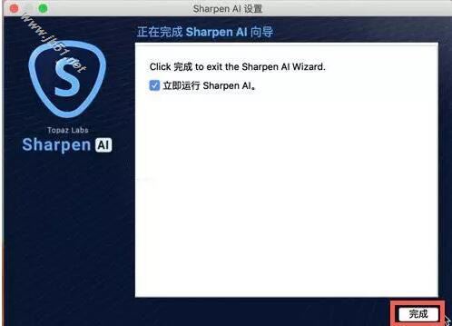安裝完成Topaz Sharpen AI for Mac點(diǎn)擊【完成】,即可,如圖:
