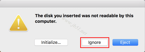 Note: 將BitLocker加密驅(qū)動(dòng)器插入Mac計(jì)算機(jī)后可能會(huì)遇到"The disk you inserted was not readable by this computer" 的提示,只需單擊Ignore按鈕繼續(xù)。.