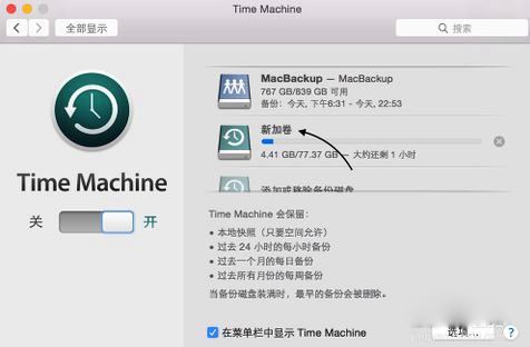 3、隨后請先確保此時 Time Machine 的開關(guān)已經(jīng)打開,如圖所示