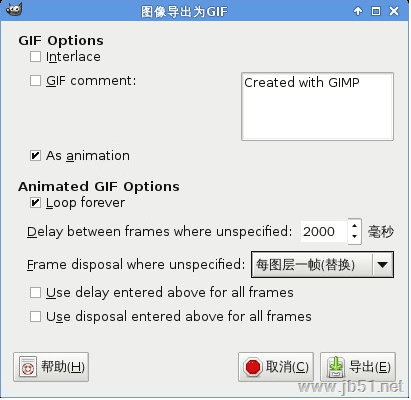 GIF Options中的As animation復選框勾上,根據需要填寫延時,然后按導出按鈕