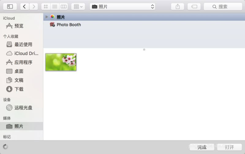 2、打開“預覽”后是一個選擇圖片的窗口,如果是編輯圖片的話就選擇要編輯的圖片后按完成進行編輯,這里小編示范一下從截圖中新建圖片(預覽工具不能新建空白圖片,只能拐拐彎了)。