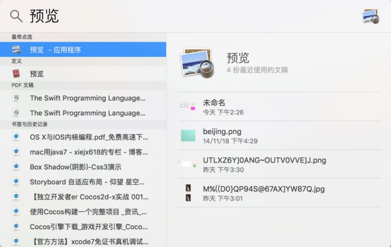 1、按“command+空格”啟動Spotlight輸入“預覽”后按確定啟動“預覽”工具。也可以雙擊一個圖片文件快速啟動“預覽”。