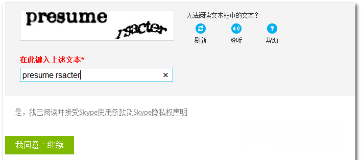 4.輸入頁面驗證文本并點擊“我同意-繼續”(如下圖)