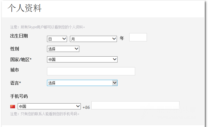 2.輸入個人資料信息。個人信息出一定要天的很詳細哦!這樣方便好友在skype上找您。(如下圖)