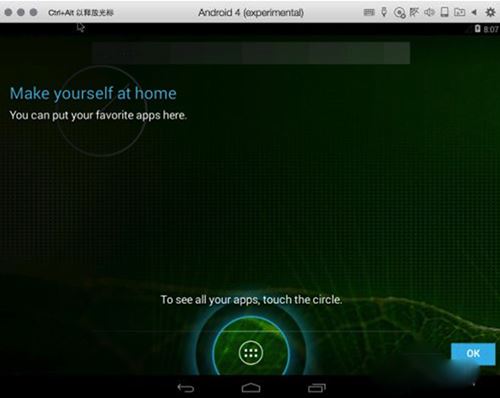 6、啟動完成以后,即可在 Mac 上看到 Andriod 的系統界面了??梢杂檬髽水斪魇种溉c擊 Andriod 界面上的圖標。