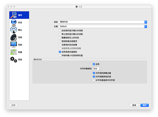 通用中可以設置OBS的語言,點擊串流會看到如下界面:
