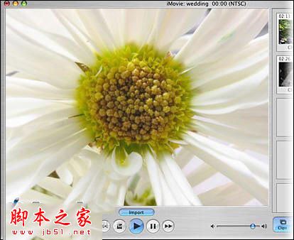 1.如上述方式擷取剪輯片段,或從硬碟中輸入影片檔案到 iMovie(從“檔案”選單中選擇“輸入”指令,然后在對話框中瀏覽并選定好一個影片檔,再按下“打開”鈕)。