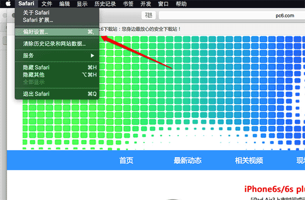 1.首先要打開 Safari,然后點(diǎn)擊屏幕左上角的 Safari 菜單,并選擇偏好設(shè)置。