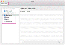 6、在“組織”選項卡上,單擊“規則”,然后選擇“編輯規則”。在“規則”框的左窗格中,單擊要為其創建規則的帳戶類型,如 Exchange、IMAP 或 POP。