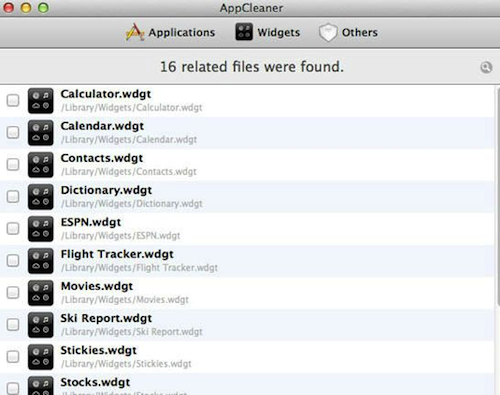 除此之外,您也可以清理在Dashboard 中不會用到的Widgets ,AppCleaner 會列出個列表來,我們可以清理掉您平常不怎么使用的Widgets。