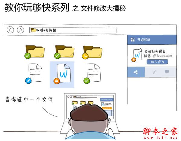 在夠快桌面客戶端側邊欄的將文件修改更新與文件及文件夾的討論有機結合、“動態”呈現,讓整個協作過程有跡可循。便于快速定位文件修改的歷史版本和與之相關的討論信息。