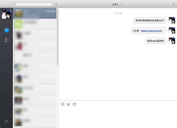 微信Mac版主窗口:可以和好友、以及通訊錄的用戶進行聊天。