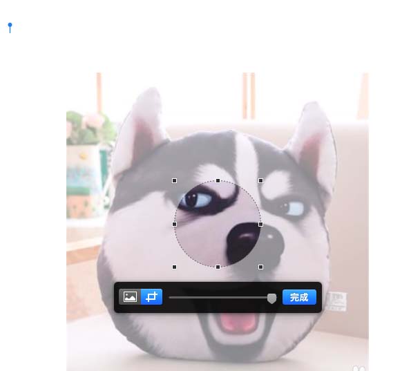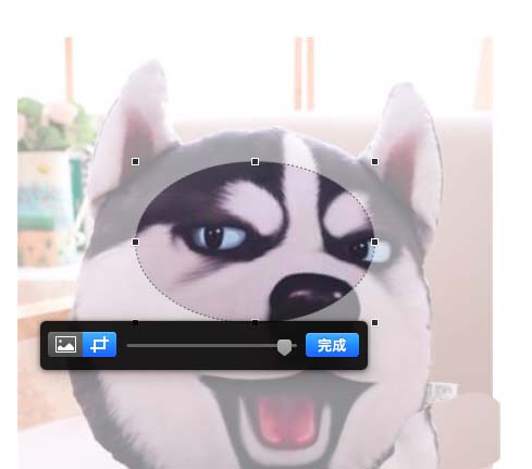 6、拖動圓形周邊改變它的形狀,拖動圖片修改遮罩區域,然后點擊完成即可。
