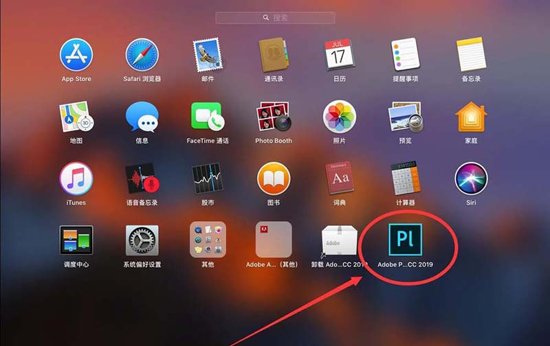 2、打開Launchpad后,點擊選擇“Adobe Prelude CC 2019”