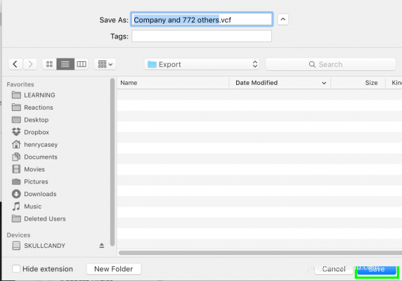 5.您的聯系人已導出到廣泛支持的.VCF文件。