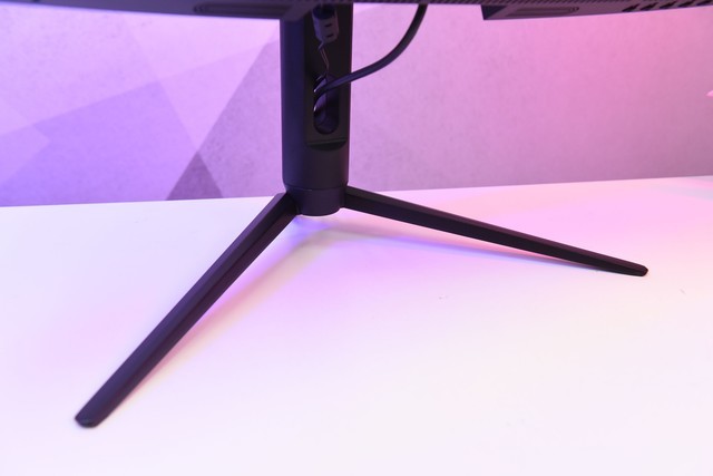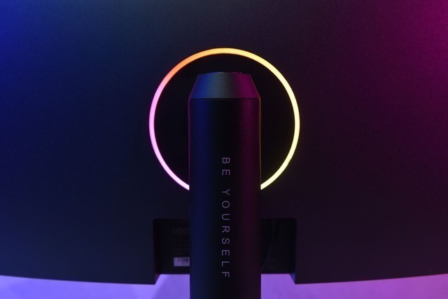 值得一提是,這款顯示器在背部居中的支架連接區域設有一圈RGB燈帶,玩家可以通過OSD菜單調整燈帶顯示模式,讓其在呼吸、多彩循環、單色循環、靜態等模式間自由切換。