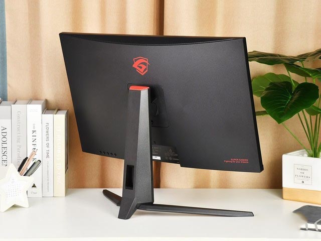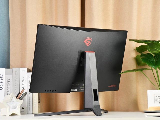 來到顯示器的背面,背面的設計也非常簡單,整體是磨砂質感,除了LOGO和接口之外沒有過多的元素,一體性非常高。同時HKC IG27電競顯示器背板上有四個螺絲孔位,說明這款顯示器是支持VESA 100×100壁掛的。