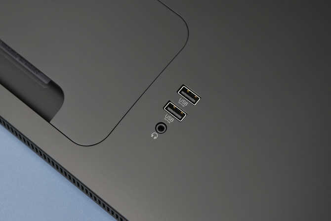 提供DP、HDMI 、接機接口、USB 3.0接口和一個3.5mm耳機接口。USB接口和耳機接口設計在背面明顯的部位,方便用戶外接擴展使用。