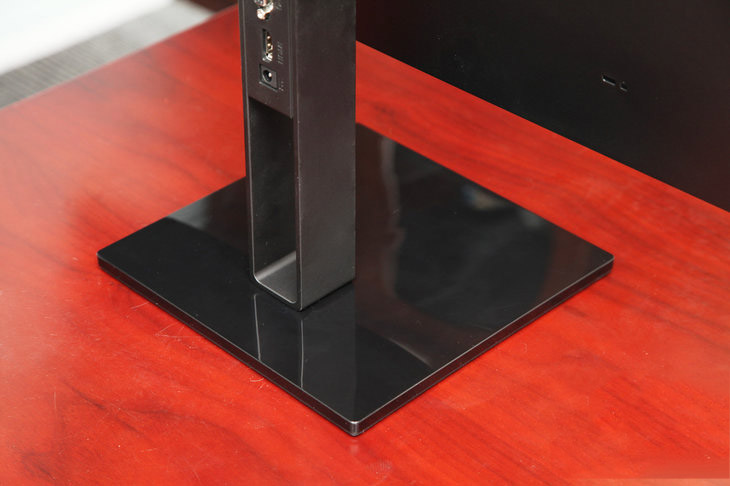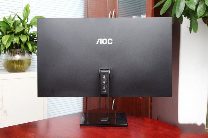 顯示器背面非常簡潔,除了中間部分一個大大的AOC產品LOGO外,并沒和多余的造型設計。不過我們從背面光滑的表面可以看出,這是一款立式顯示器,并沒有添加掛壁設計。
