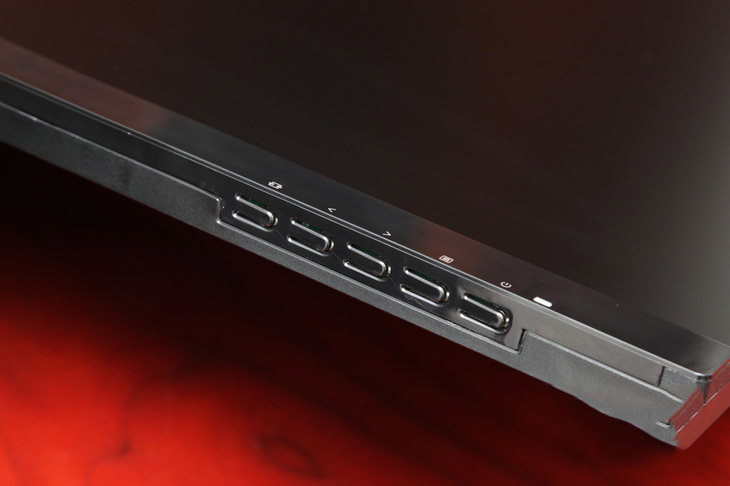 AOC 27V2H顯示器的OSD按鍵位于屏幕左下方,一個電源鍵和四核控制鍵全部采用實體按鍵方式,按鍵反饋清晰,觸感適中,圖示位于屏幕正面,便于用戶對應相關按鍵。