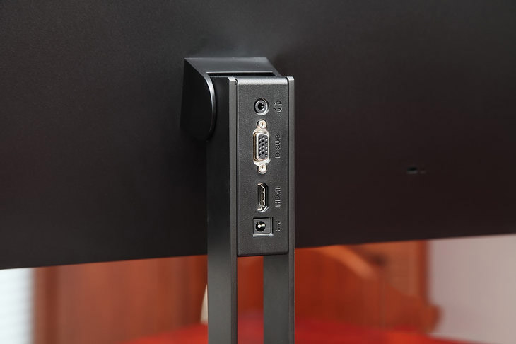 接口部分同樣非常簡潔,與很多顯示器將接口藏于機身內部不同,AOC 27V2H顯示器的接口直接裸露在機身外部,便于插拔,而且標識一目了然,可以看到,這款顯示器配備了一個D-SUB(VGA)接口以及HDMI高清視頻接口以及音頻輸出接口,基本可以滿足用戶的日常接駁藍光DVD以及PS設備的需求。