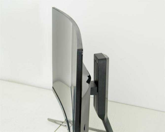 顯示器的高度和俯仰角度就是通過這個底座支架實現的,支架上有兩條滑軌,輕輕上推和下壓就能調節高度,阻尼感正合適