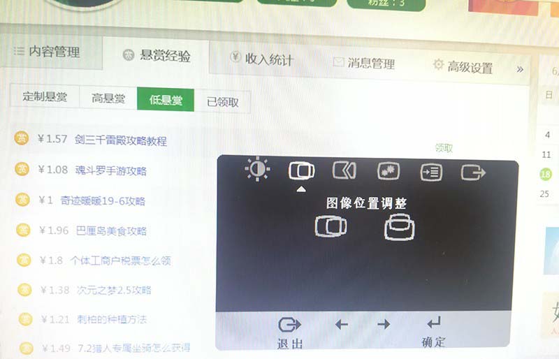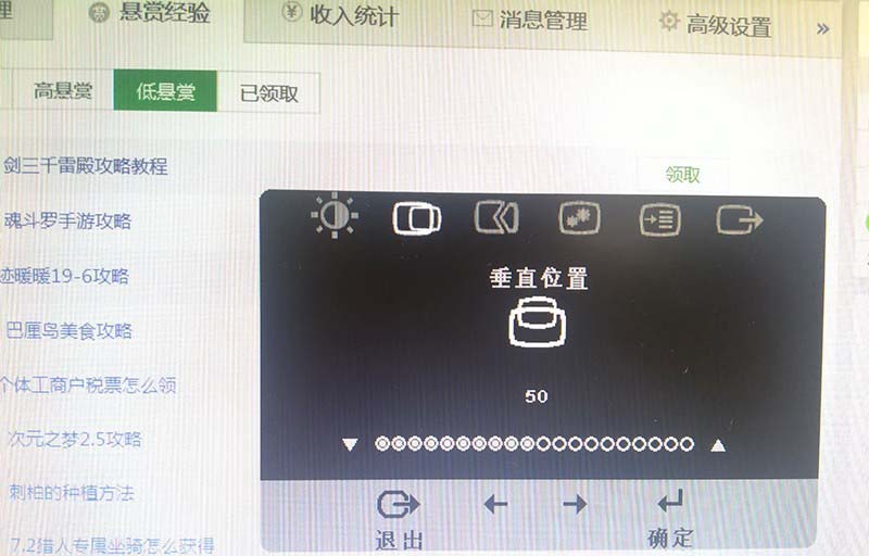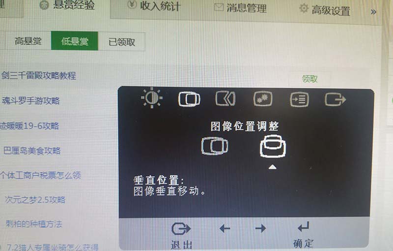5、根據(jù)圖片偏移的情況,進(jìn)入對應(yīng)的水平/垂直調(diào)整,然后按 左右按鍵,調(diào)整到合適的位置,確定后,推出即可。