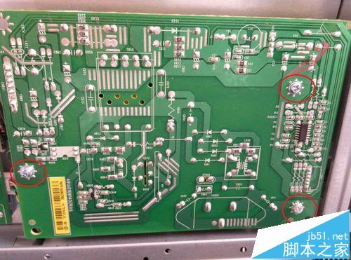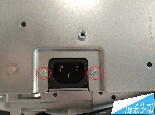 16、把電源接口處的這兩顆螺絲擰下來。如圖紅圈所示。