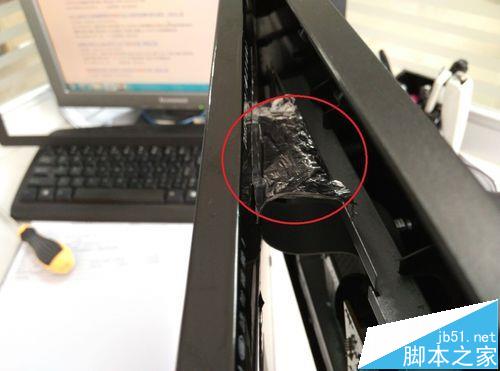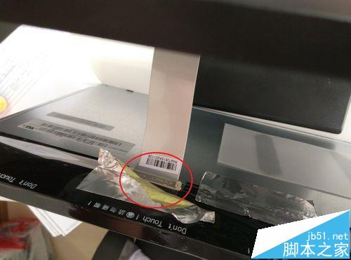 6、液晶屏的頂部被錫箔粘住,如下圖紅圈所示。把它撕開。