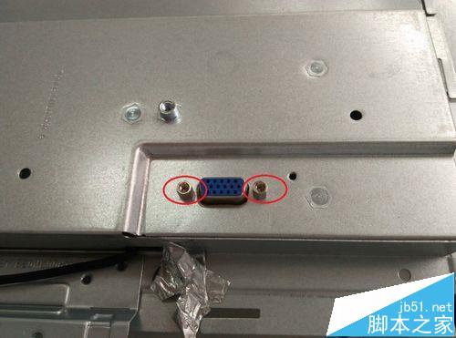 19、把VGA接口處的兩顆螺柱也擰下來。如下圖。這兩個螺柱需要用尖嘴鉗夾住擰下來。