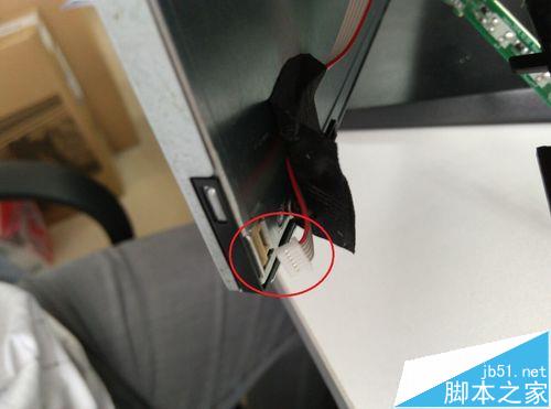 5、接下來開始拆液晶面板。先找到右下角背面的連接線,拔出來。如下圖紅圈標注處。