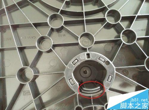 12、我們再用螺絲刀把底座支柱背面頂部的擋片撬下來。如下圖所示。