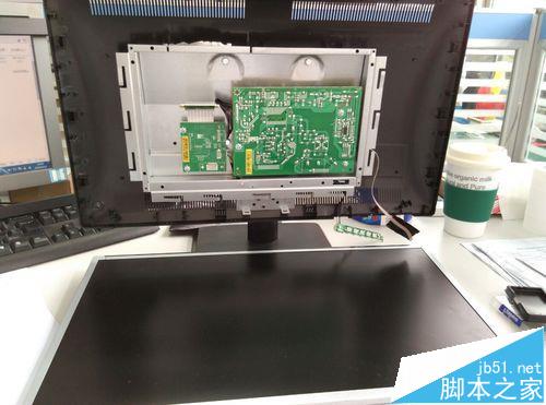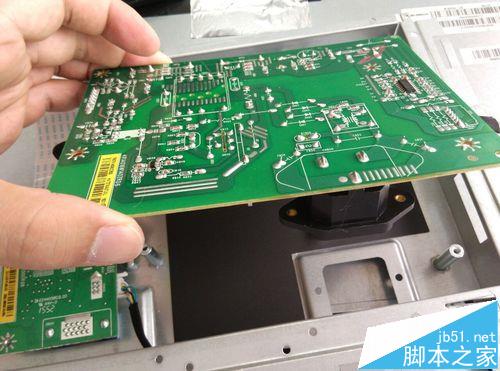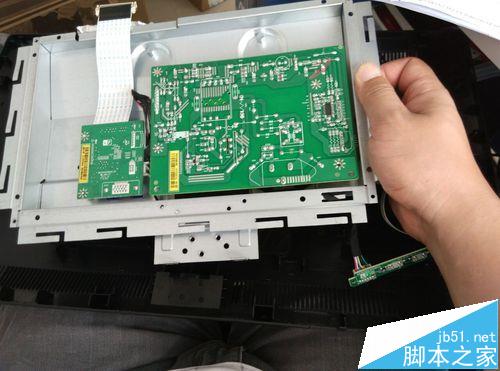 9、至此,液晶屏就可以取下來了。我們可以看到還連在顯示器外殼上的就只剩下一大一小兩塊電路板了。下一步就開始動手拆它們。