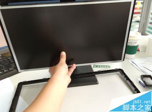 4、好了,現在前面板邊框取下來了。這時可以感覺到液晶屏在往下滑,可見液晶屏并沒有用螺絲固定住,最好用手托住它,以防磕到哪里磕壞了。
