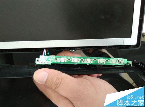3、邊框拆下來時注意右下方按鈕的位置,在里面有一塊長條行的電路板,要把它取下來。