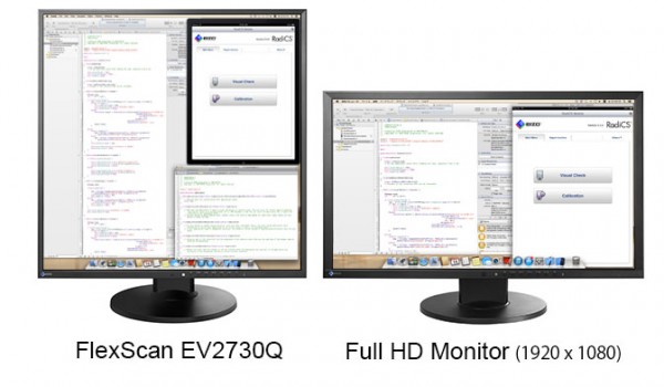 顯示屏幕分辨率五花八門,但不管高寬比是4:3、16:9、16:10、21:9或者多么另類,無一例外都是長方形的,直到今天,1:1的出現了!藝卓今天就發布了這么個奇怪的東東,型號“FlexScan EV2730Q”,26.5寸,分辨率1920×1920,總像素370萬,正好和2560×1440完全相同,而對比1920×1080的多了78%。