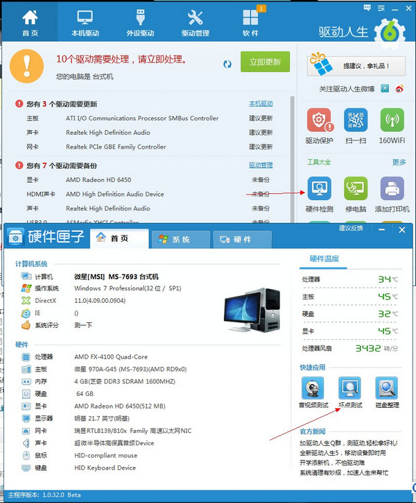一般我們會利用檢測軟件來查看,這里小編給大家推薦驅動人生,操作簡單,使用方便。
