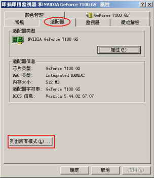 (3)、若顯示器隨機光盤丟失或設置無效,可點擊“適配器”,點擊“列出所有模式”,如下圖所示