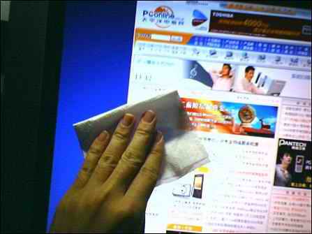 答:按照專家的回答,這個是不推薦的做法。但是在實際操作中這種其實是LCD用戶最常見的清潔方式,在這里筆者強調一下,應該使用面巾紙來清潔,因為面巾紙多數是較柔軟的,在擦試的時候注意不要把面巾紙搓成一團來擦,而是要保持平整地去輕輕擦試。