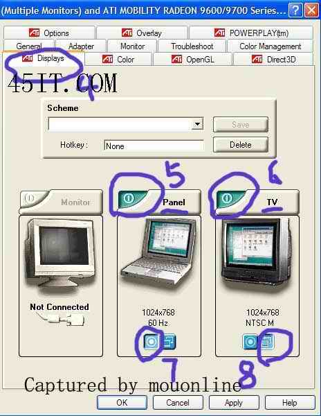 7,和8,是相呼應的! 你只要在我畫的圈圈里點一下就可以了! 意思是說, 筆記本是你的第一顯示器, 電視是你的第二顯示器!