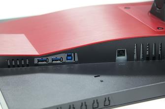 除了貼心的屏幕角度可調節設計,AOC AG251FG在接口和按鍵設計上也是十分貼心。