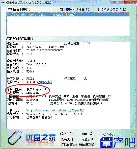 量產要根據u盤的主控找量產工具,這里所說的主控就是u盤的芯片廠商和芯片型號。檢測主控,最最準確的方法當然是拆開查看了