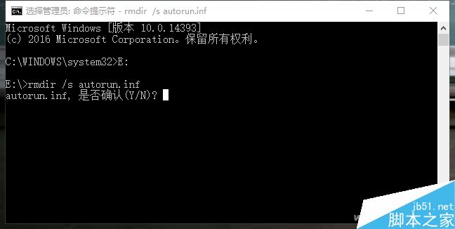 啟動管理員模式的命里提示符,輸入X:后回車(X代表U盤盤符),隨后輸入rmdir /s autorun.inf就能將其干掉。